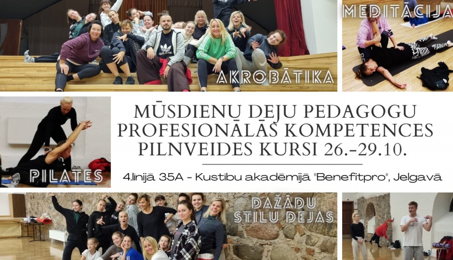 - Kursu norises vieta: Kustību akadēmijā ''BenefitPro'', Jelgavā, 4.līnijā 35A, LV-3003
