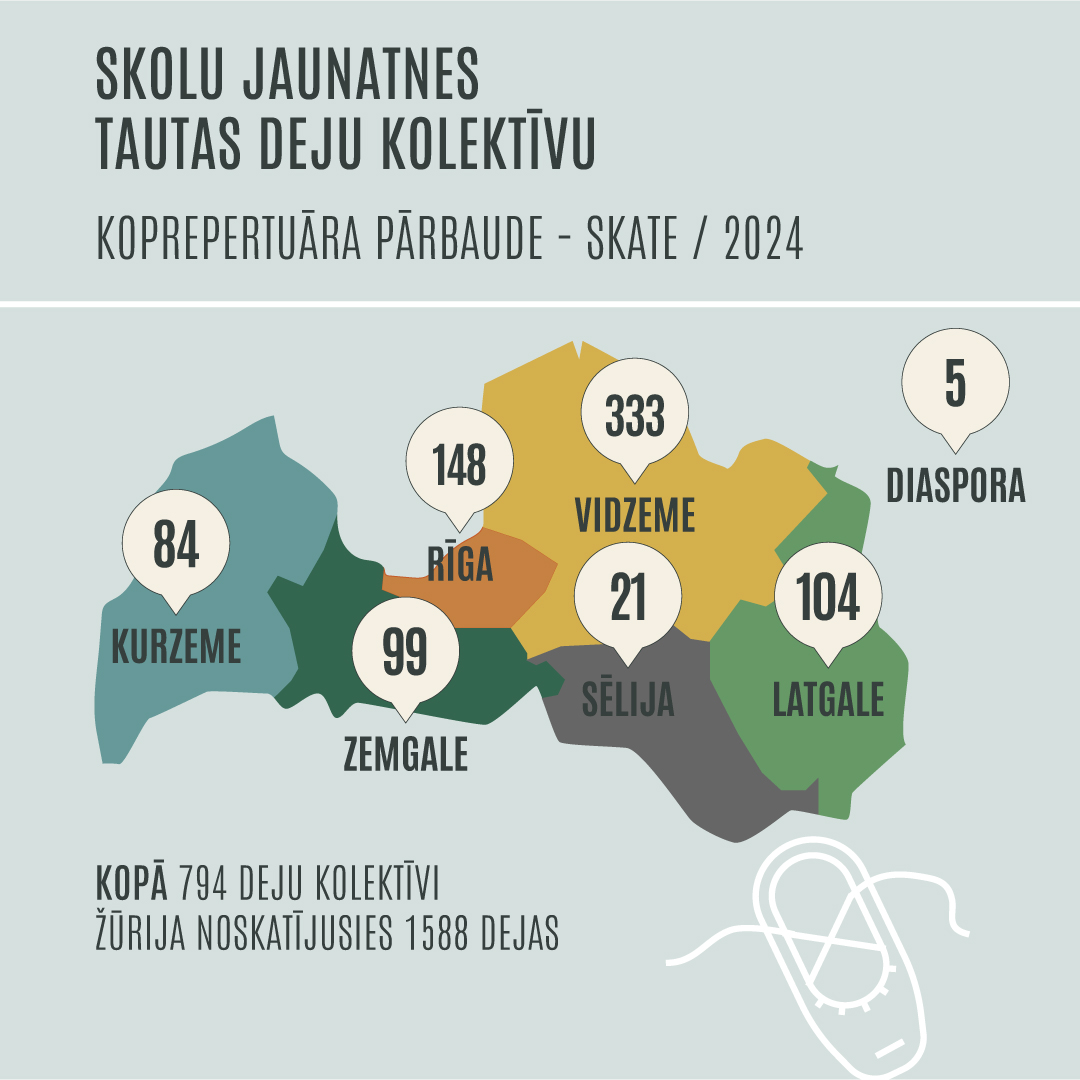 Aizvadītajā mācību gadā no marta līdz maijam 42 vietās Latvijā notika tautas deju kolektīvu koprepertuāra pārbaude. Šajā gadā skatē piedalījās 794 kolektīvi – 789 no Latvijas, pieci no diasporas. Dejotāji gatavojas Svētku deju lielkoncertam “Es atvēru Laimas dārzu”. Horeogrāfe, XIII Latvijas Skolu jaunatnes Dziesmu un deju svētku deju lielkoncerta mākslinieciskā vadītāja Dagmāra Bārbale stāsta: