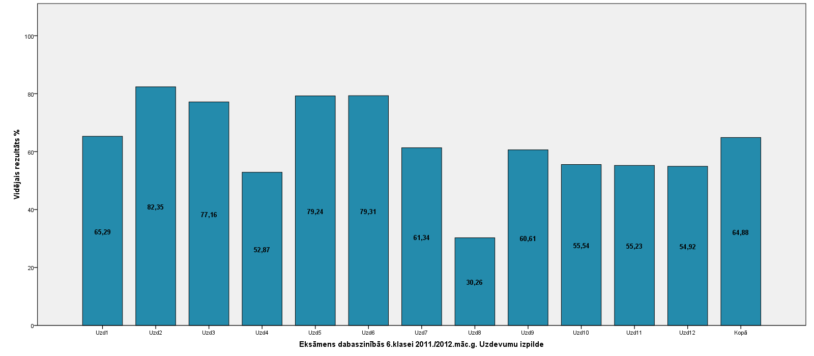 Valsts izglītības satura centrs ir apkopojis un analizējis 2012.gada pavasara valsts pārbaudes darbu rezultātus. Kopumā ir apkopoti vairāk nekā 79 000 centralizēto eksāmenu dati un vairāk kā 152000 skolēnu rezultāti necentralizētajos valsts pārbaudes darbos.