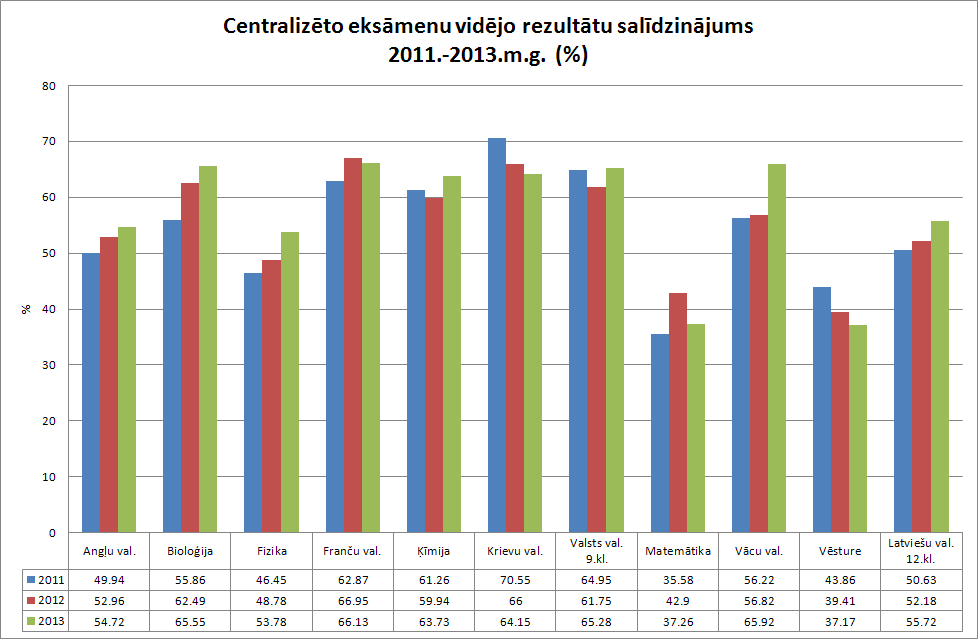 Valsts izglītības satura centrs ir apkopojis un analizējis 2013.gada pavasara valsts pārbaudes darbu rezultātus. Apkopoti vairāk nekā 68000 centralizēto eksāmenu dati un vairāk kā 164000 skolēnu rezultāti necentralizētajos valsts pārbaudes darbos. Valsts pārbaudes darbu vispārīgā un aprakstošā analīze sniedz ikvienam interesentam priekšstatu par skolēnu sasniegumu tendencēm valsts, pašvaldības un skolas līmenī.