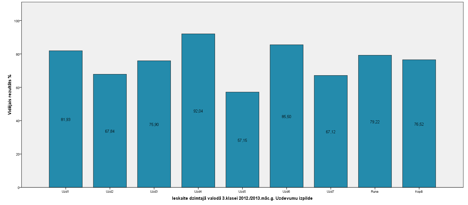 | Pārbaudes darbs | Punktu sadalījums | Daļu salīdzinājums | Salīdzinājums pēc urbanizācijas | Salīdzinājums pēc skolas tipa | Salīdzinājums pēc apmācības valodas | Uzdevumu izpilde |