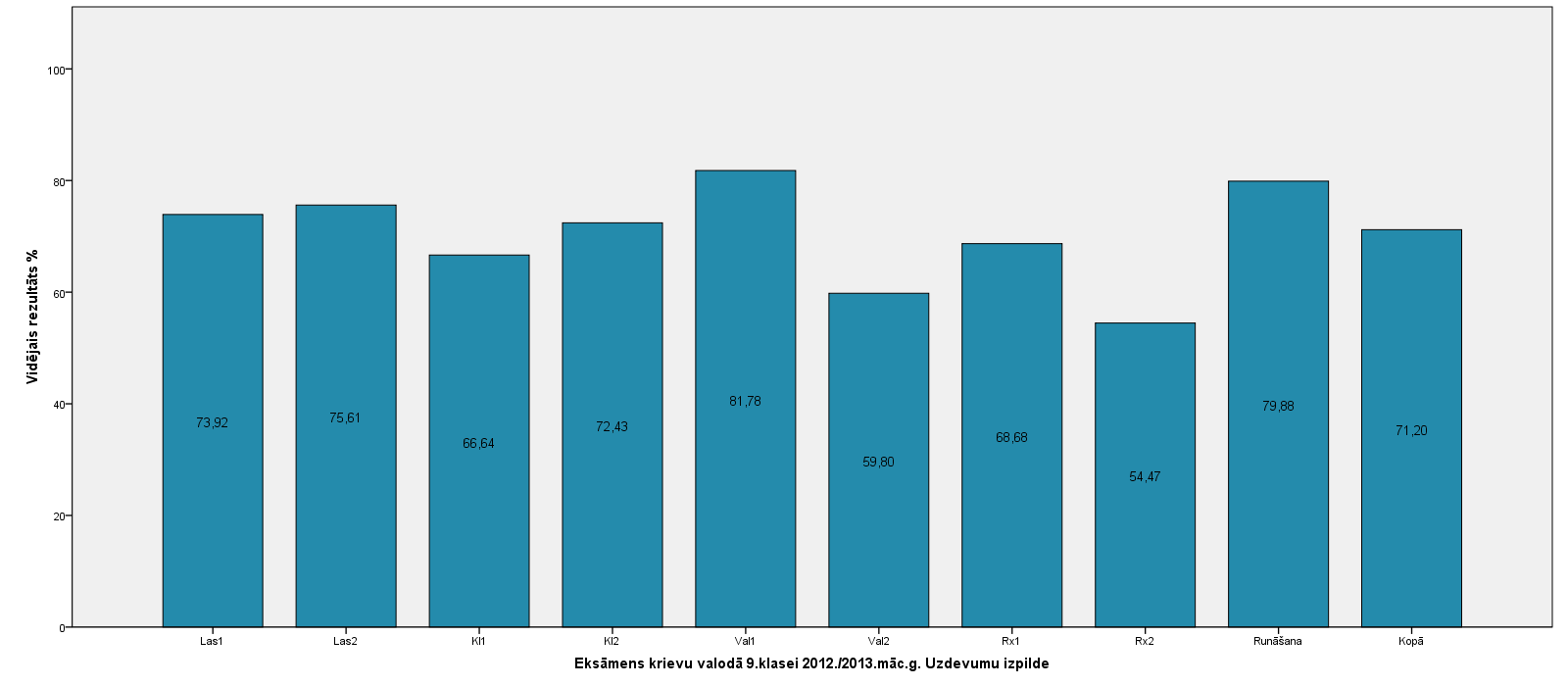 Valsts izglītības satura centrs ir apkopojis un analizējis 2013.gada pavasara valsts pārbaudes darbu rezultātus. Apkopoti vairāk nekā 68000 centralizēto eksāmenu dati un vairāk kā 164000 skolēnu rezultāti necentralizētajos valsts pārbaudes darbos. Valsts pārbaudes darbu vispārīgā un aprakstošā analīze sniedz ikvienam interesentam priekšstatu par skolēnu sasniegumu tendencēm valsts, pašvaldības un skolas līmenī.