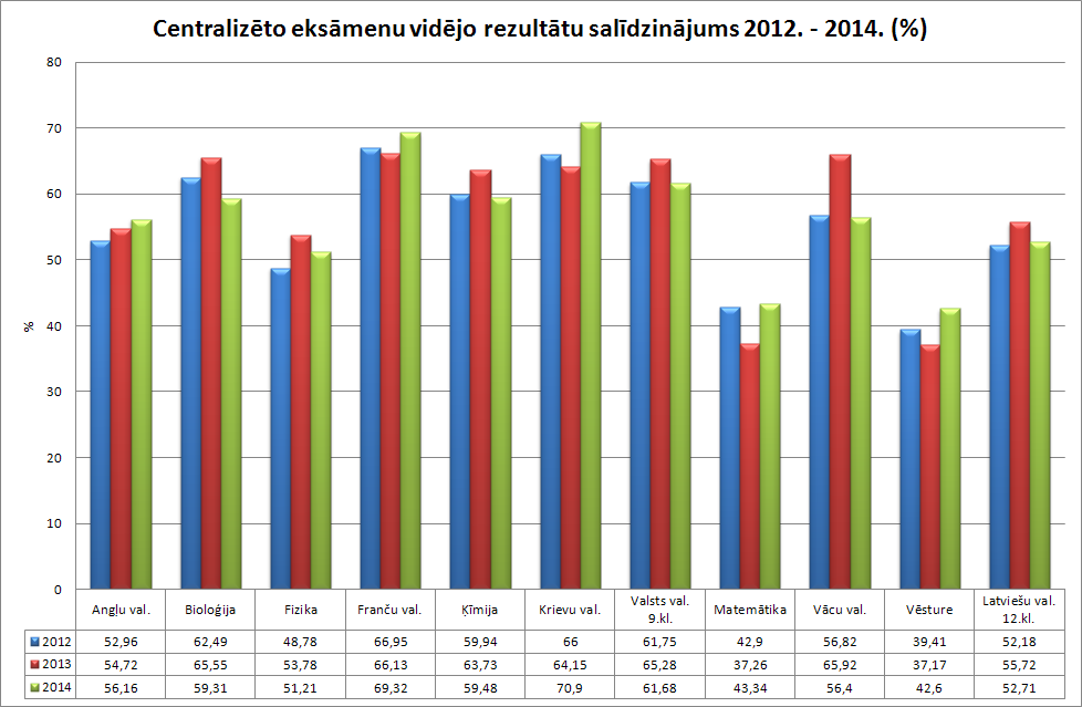 Valsts izglītības satura centrs ir sagatavojis statistikas pārskatu par 2014.gada pavasara valsts pārbaudes darbu rezultātiem. Apkopoti gandrīz 63000 centralizēto eksāmenu dati un vairāk kā 164000 skolēnu rezultāti necentralizētajos valsts pārbaudes darbos. Valsts pārbaudes darbu vispārīgā un aprakstošā analīze sniedz ikvienam interesentam priekšstatu par skolēnu sasniegumu tendencēm valsts, pašvaldības un skolas līmenī.